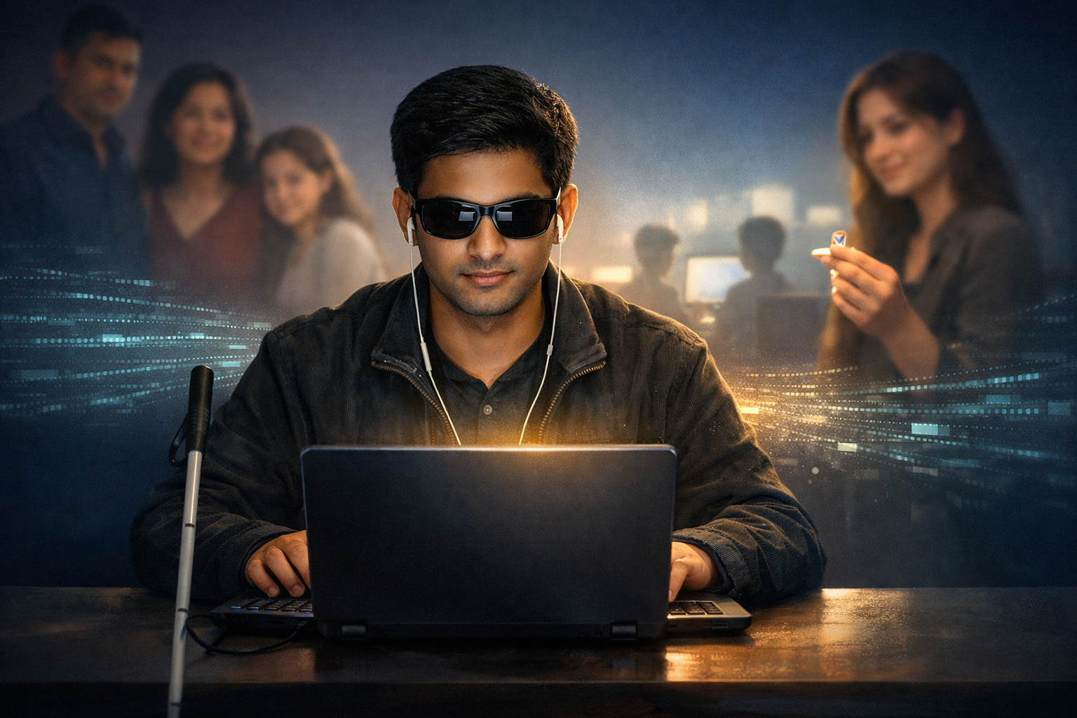 The instructor introduced him to screen readers — JAWS and NVDA — software that translated the digital world into audio, turning every line of code, every document, every website into something navigable by ear and touch. For the first time in months, Rehan sat at a keyboard and felt the particular electricity of a mind engaging with a problem it was built for.